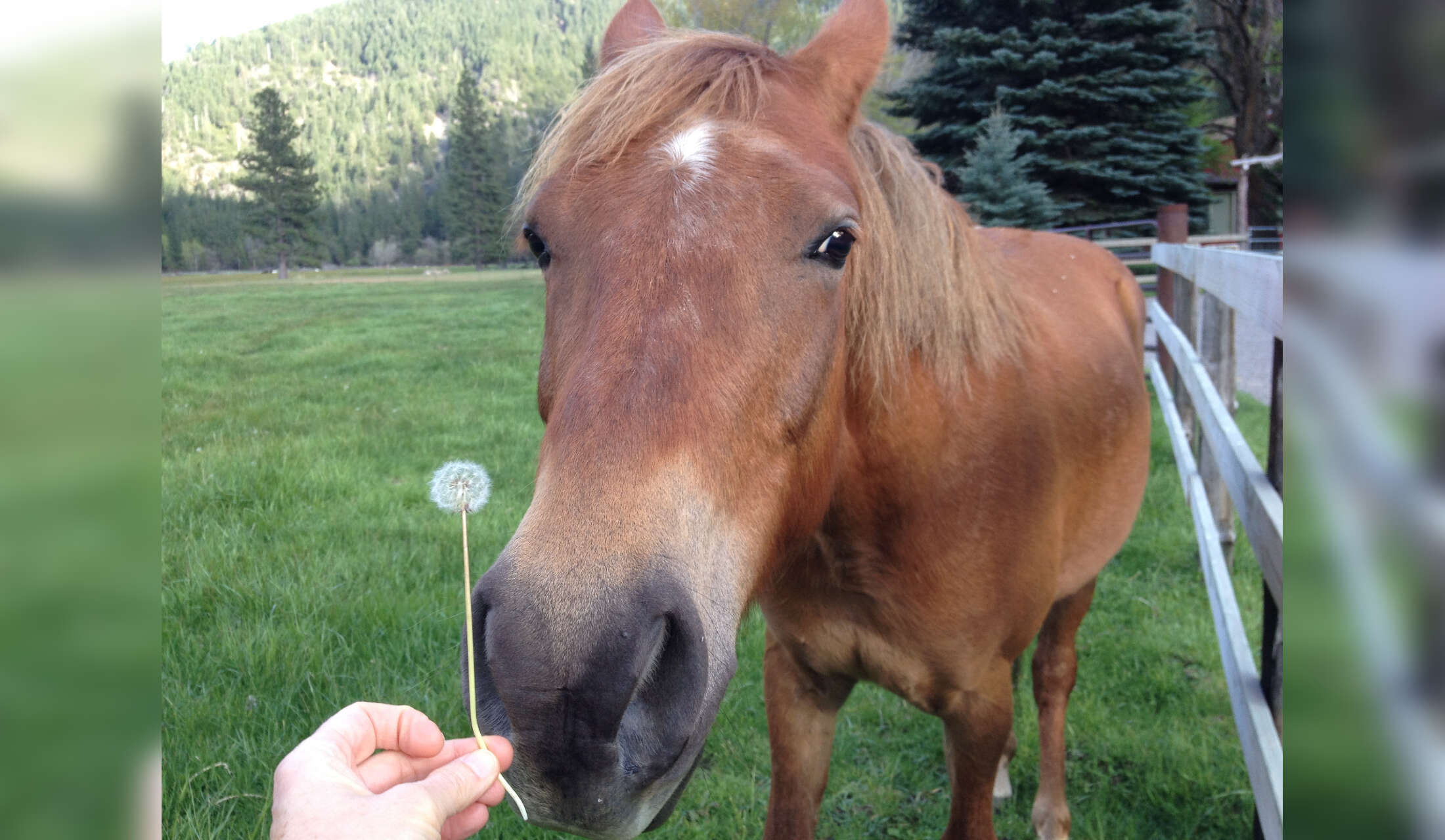 Way back then, before I started traveling at length, I moved up to a remote cabin in the Sierra mountains of northern California. The lease did not allow pets. The closest neighbors had a holiday home, and they let a local horseman use their ranch. He would bring his trail or pack horses on rotation, granting them a semi-wild month or more grazing in the huge pasture. And I eagerly volunteered (when he asked) to hay and oat them in wintry months, brushing them year round. Sometimes I would simply sit against the fence post and read, and one or two would saunter over and nuzzle, seeming to appreciate that they were being treated not as a beast of burden with me on their back, but as a fellow creature, well-admired. I am a good rider, though now I prefer to enjoy connecting with horses eye-to-eye.
