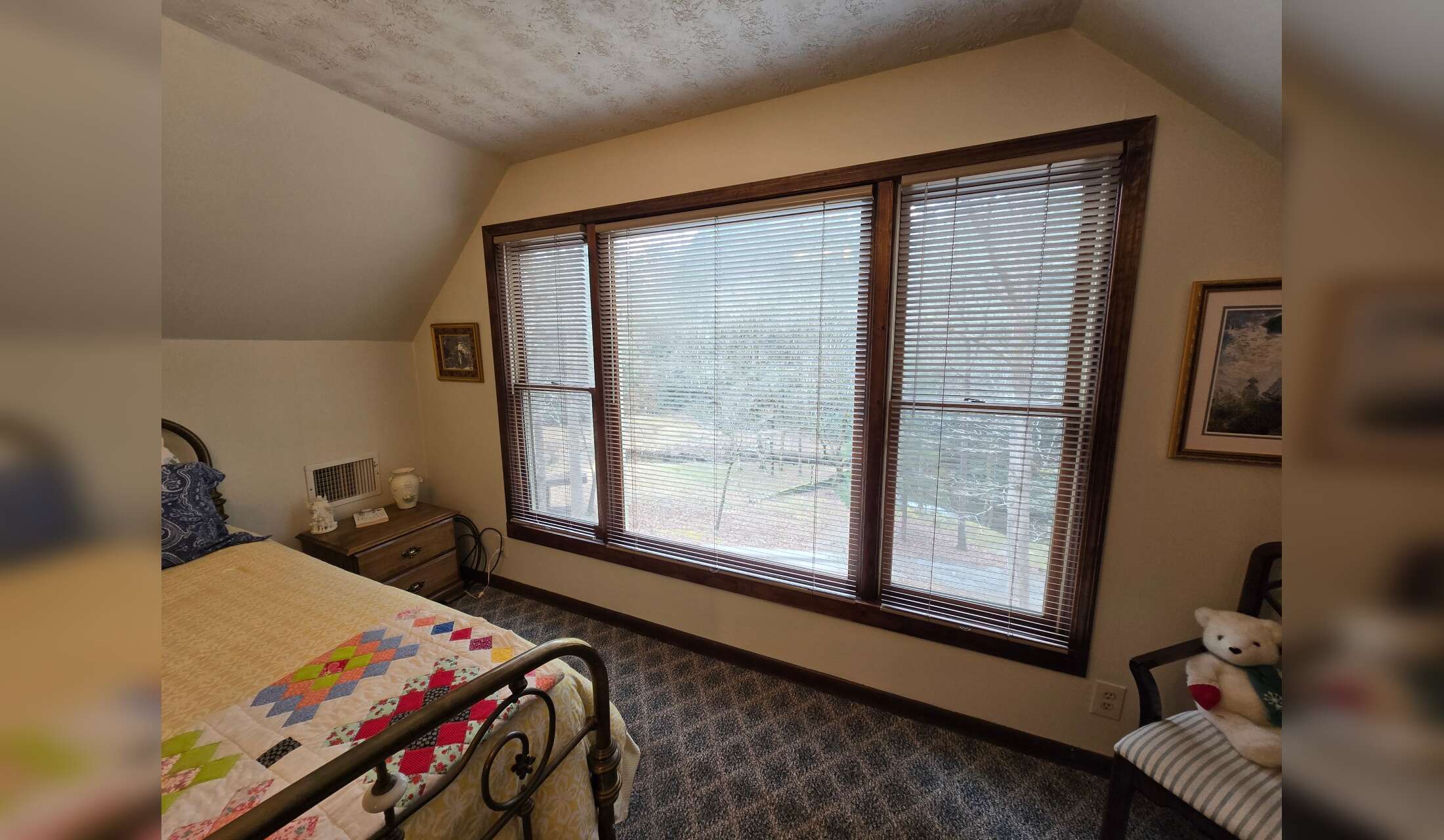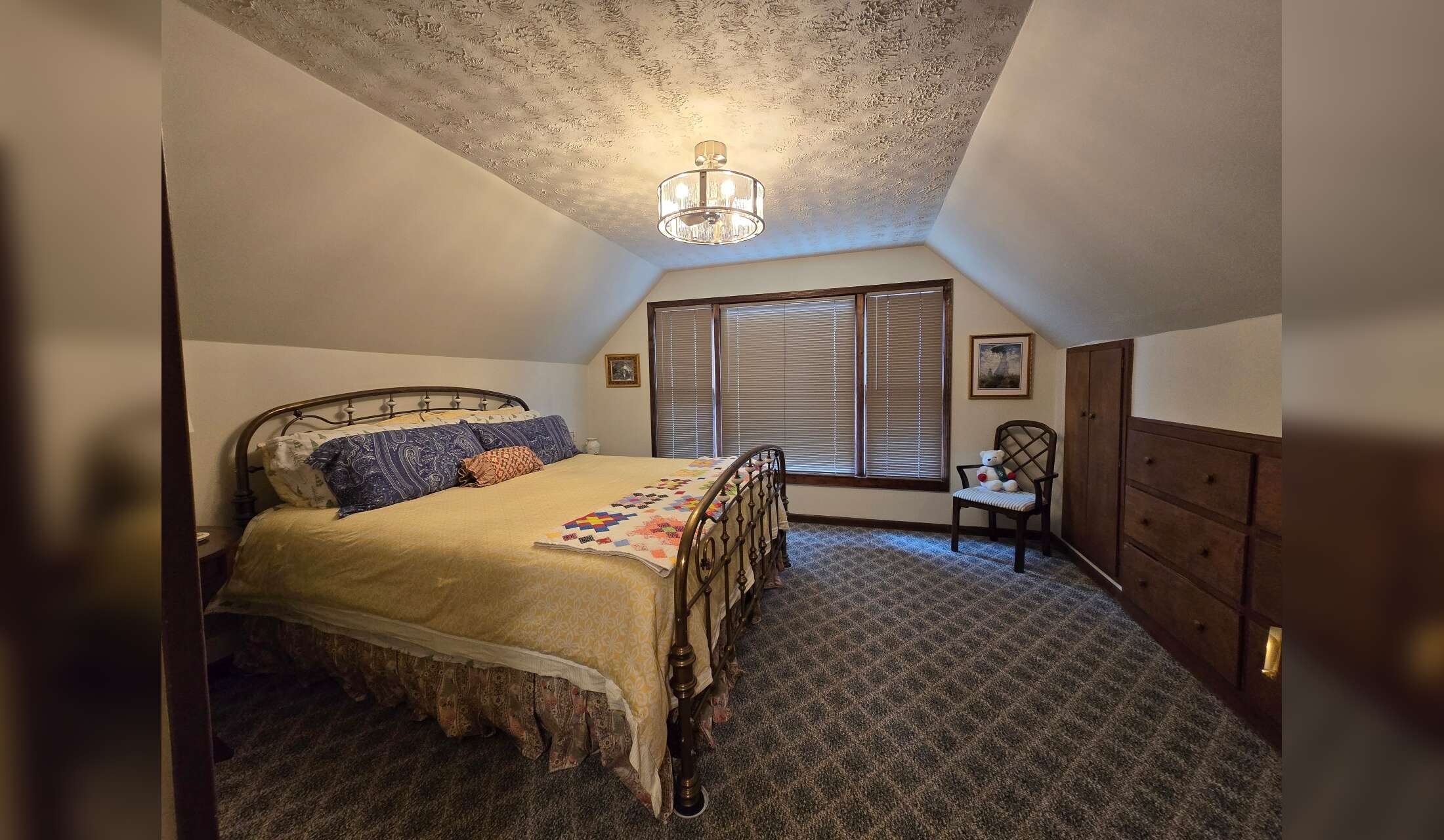 You will be staying in the charming and comfortable guest room upstairs. King size bed, private bath.