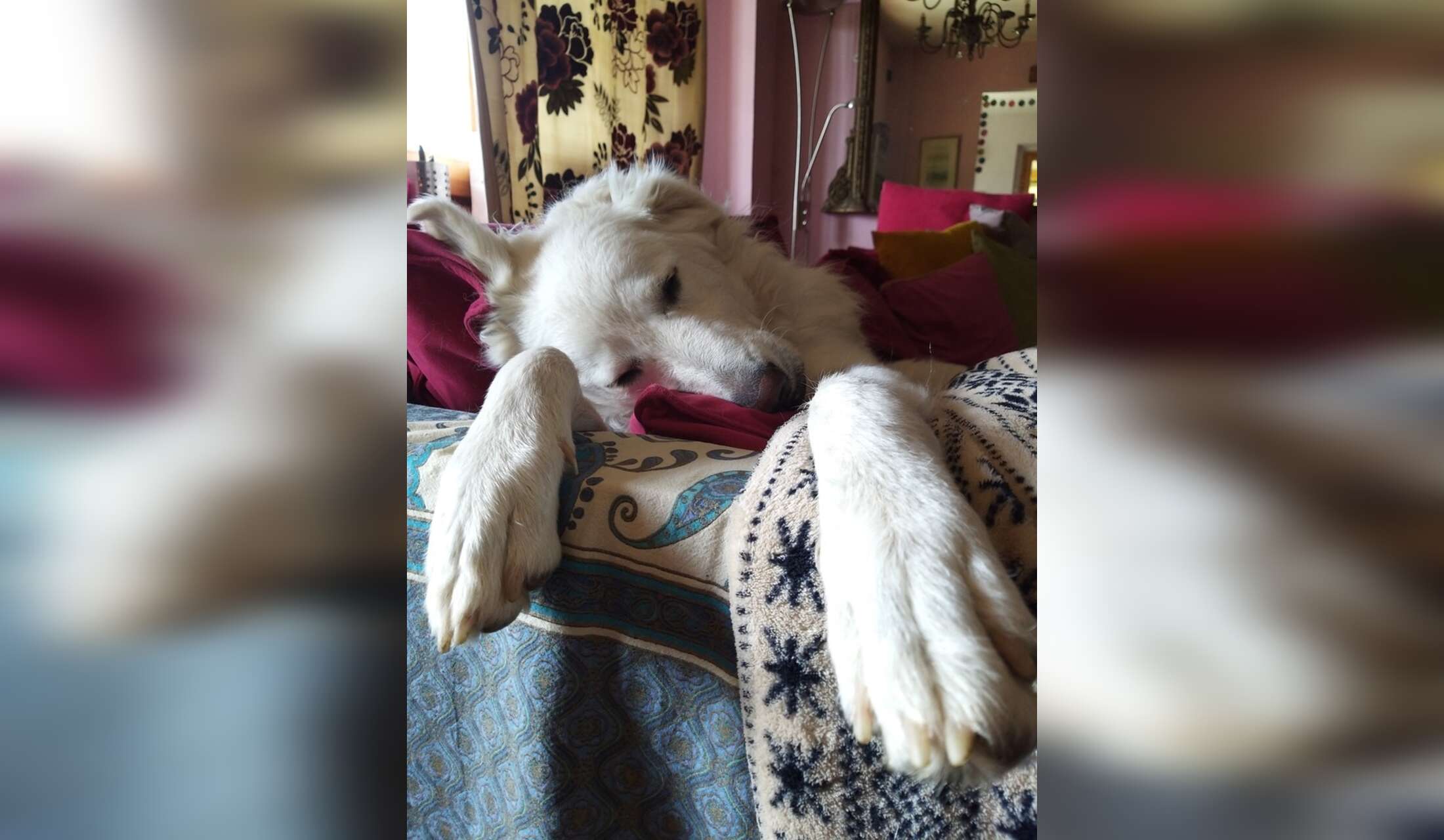 ELTON : 9 year old Great Pyrenees. Elton was rescued aged 6,5. He spent 6 years in a cage (in at 6 months, out at 6,5 years). He is an absolutely LOVELY dog, but because of his history, he was never properly socialized with other dogs. He has improved tremendously since I have had him, but he can still be fear reactive towards dogs who come too close (his "safety space" is 10 meters or more). Because of this, for shorter sits we have opted to have him walked by our local dog sitter who knows him and vice versa. For longer sits though, if he is not traveling with me, you will have time to get to know one another and if so long as you are experienced, understand his triggers and are fit, you will have no trouble walking him. All instructions / indications will be provided. At home is he very affectionate, calm and loving. He doesn't mind cats, enjoys his walks, does NOT like to be brushed.