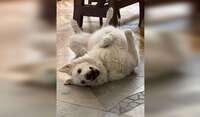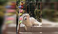 SYRIA : 9 year old Great Pyrenees mix. She was rescued at 14 months, is very friendly, loves cuddles and being brushed. She does not like to be walked on a leash but we have a large, gated park 2kms from the house where she will happily walk off leash (once she knows you). Syria had a hip prosthetic since 2023 so she gets tired easily. Her walks are usually max 45 minutes, only once a day, and sometimes even only every other day. She is a homebody. Loves cuddles, LOVES food, hates cats.