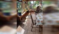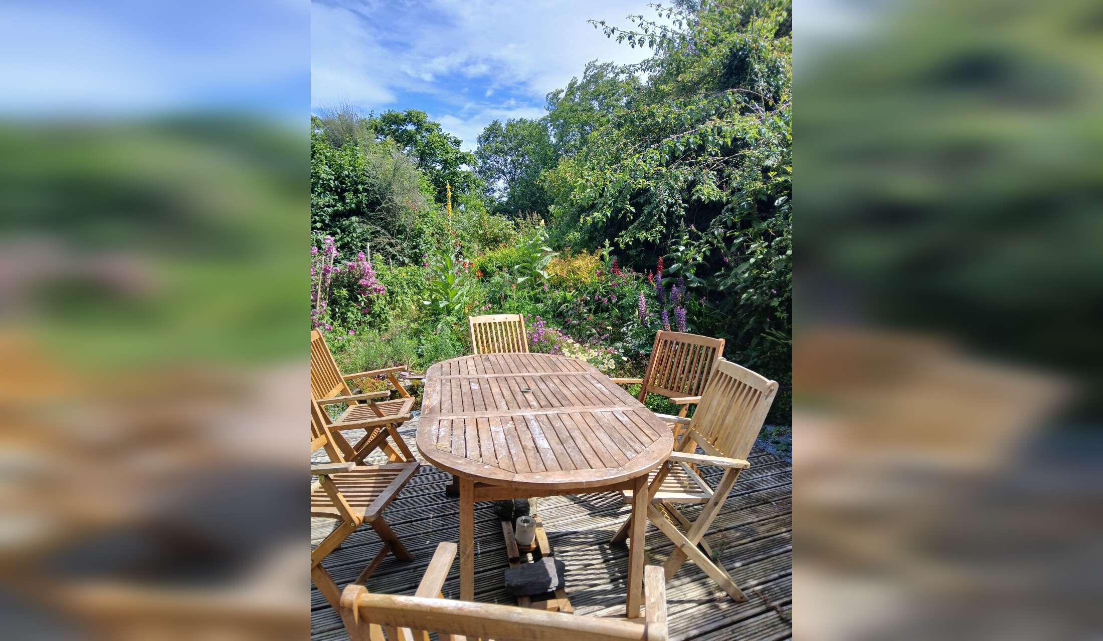 The garden is designed to offer various seating areas. For example it has decking and outdoor furniture for the sunshine and a polytunnel with seating /table for poorer weather.