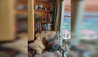 Our cat is of unknown age but senior, She is very gentle and sociable and likes to sit on your lap. She has been diagnosed with renal failure but is generally well. This means she eats only ‘renal’ food and sometimes regurgitates it if she overdoes it. We had a beloved elderly retriever till six months ago and so we are are aware she could have a crisis and possibly die at any time, but she is currently well and a very content and loving animal.