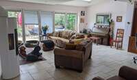 Downstairs is a huge living area (wood stove, massive TV, SKY. Netflix, Amazon, PLEX etc.), a similarly sized kitchen/dining room, office, utility room and a shower wet room. There is an additional doggie shower room off the utility room that will be in continuous use as they have a superhuman (superdoggie?) ability to get muddy!