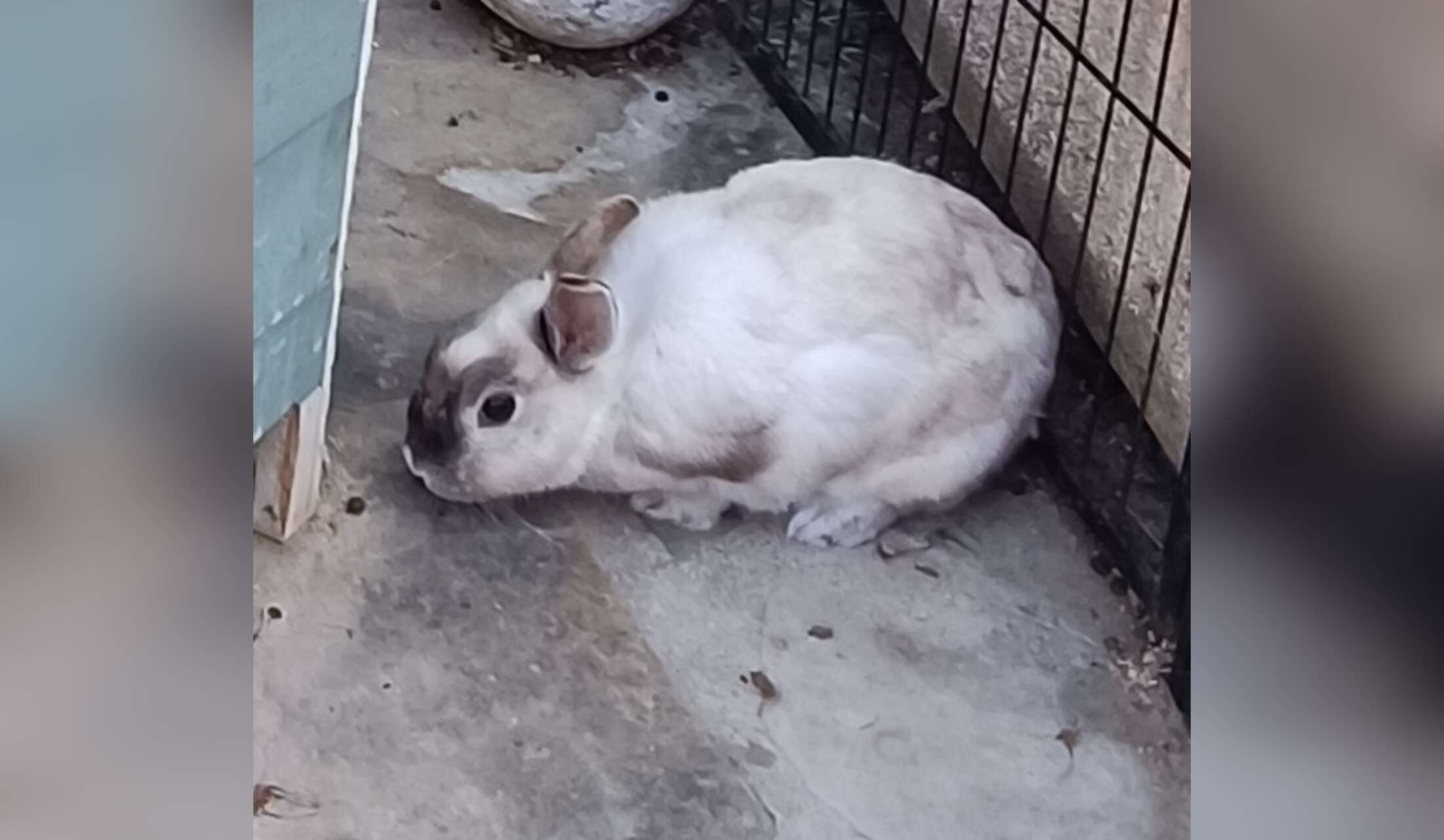 The rabbit has his own space on the top terrace. He needs food, water and a clean cage. He is very curious, but does not like to be touched.