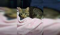 We recently adopted a street cat. Every night he sleeps inside and during the day he comes and goes. He loves to cuddle.