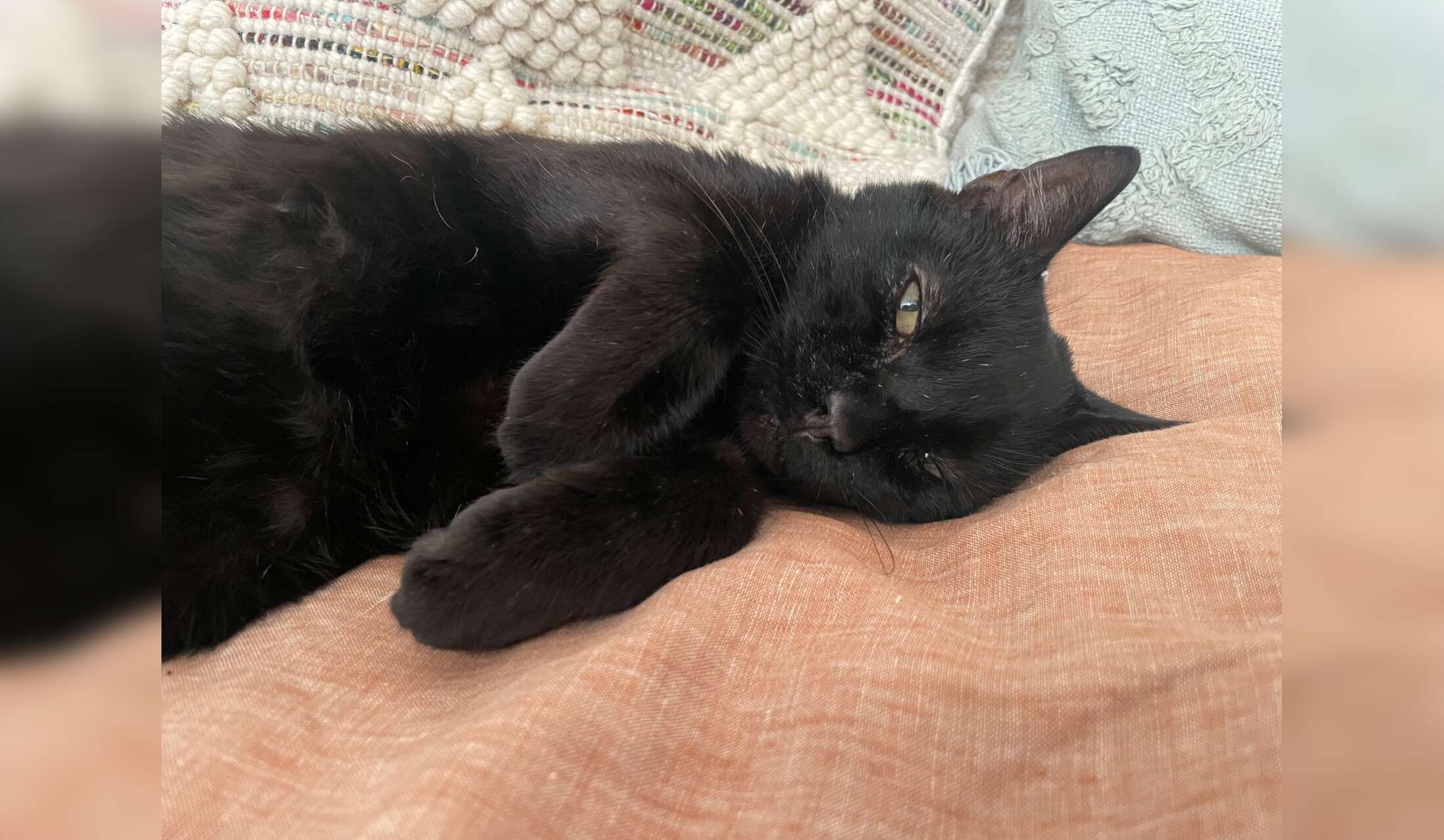 He is the sweetest guy in the world! We got him from a rescue agency in our neighborhood 3 years ago. He took a while to totally settle in to domestic life, but he is fully blissed out at this point. He loves the lazy domestic cat life, and we love him!