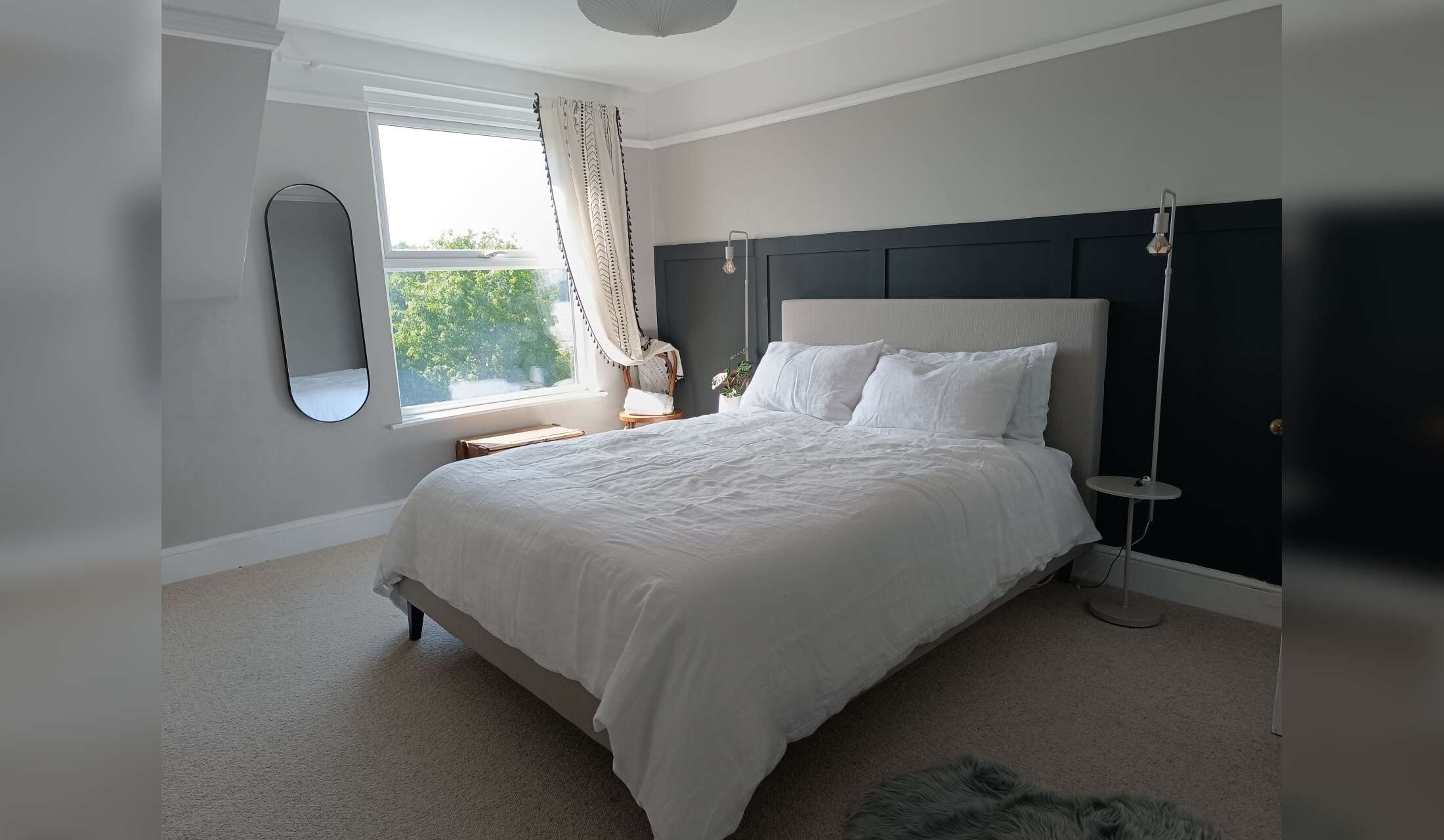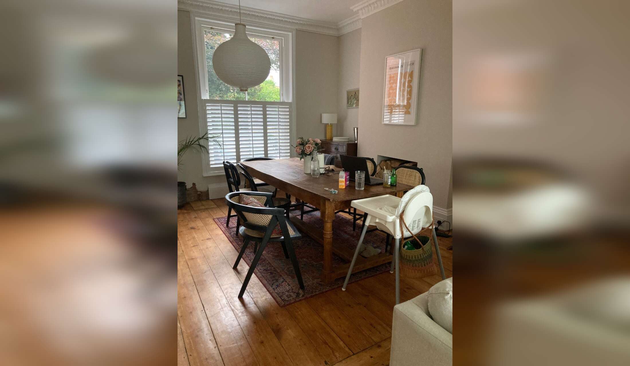 Our property is an old semi-detached house with lots of character and charm. We have been renovating room by room slowly and we try and attempt a bold and quirky feel. We live a 5 minute walk into the town centre and a 30 second stroll to the train station, but the house remains quiet and comfortable. The garden backs onto the river Nadder and you may even sight a Kingfisher or swans.