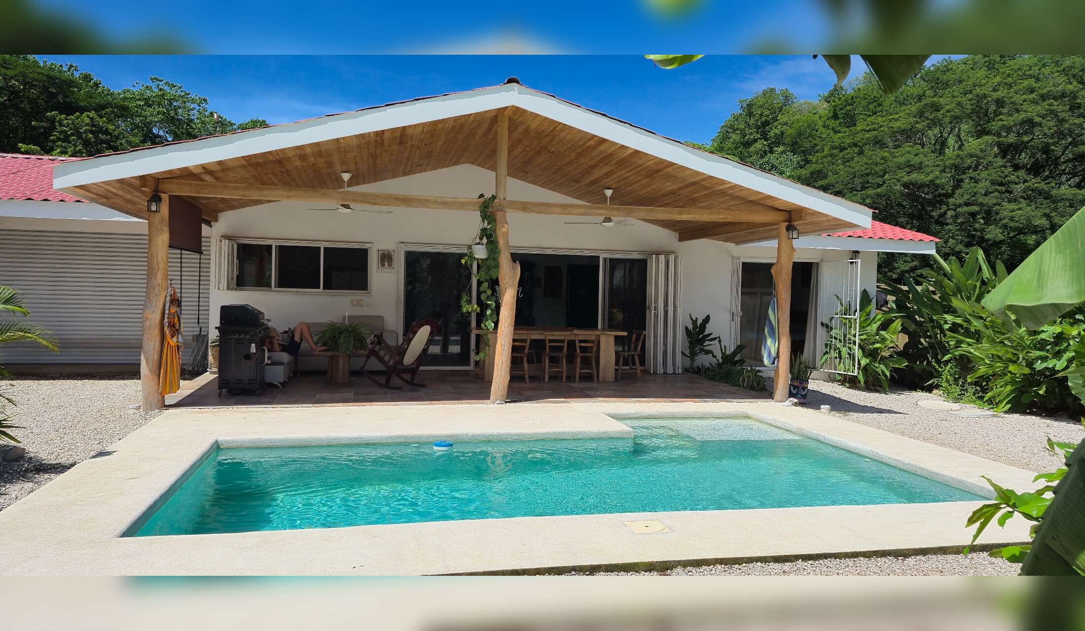 My home is located in a peaceful area of Guanacaste, Costa Rica, just 1.5 km from the nearest beach. The property features a private swimming pool and a garden, perfect for relaxing and enjoying the tropical surroundings.
