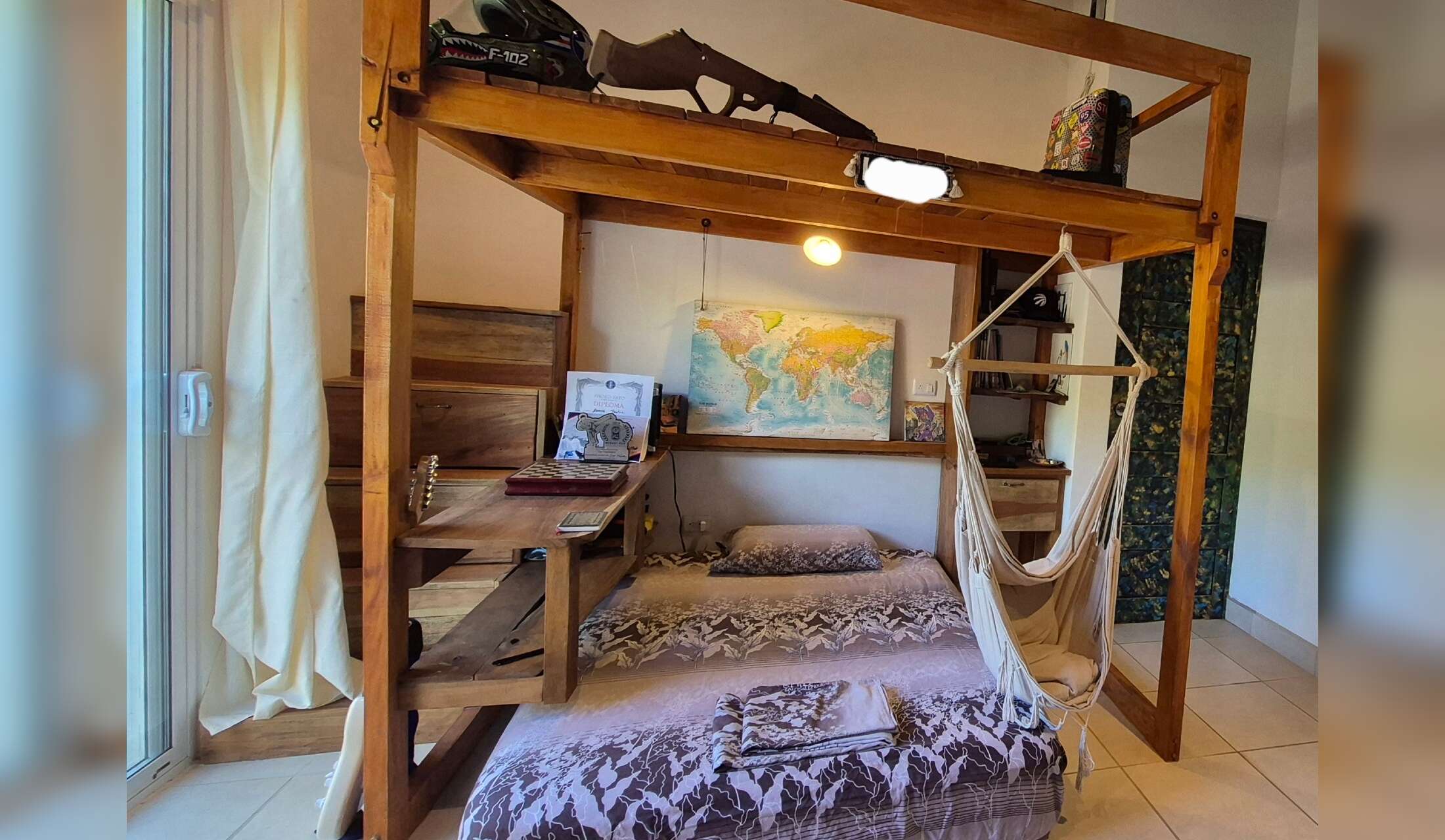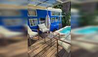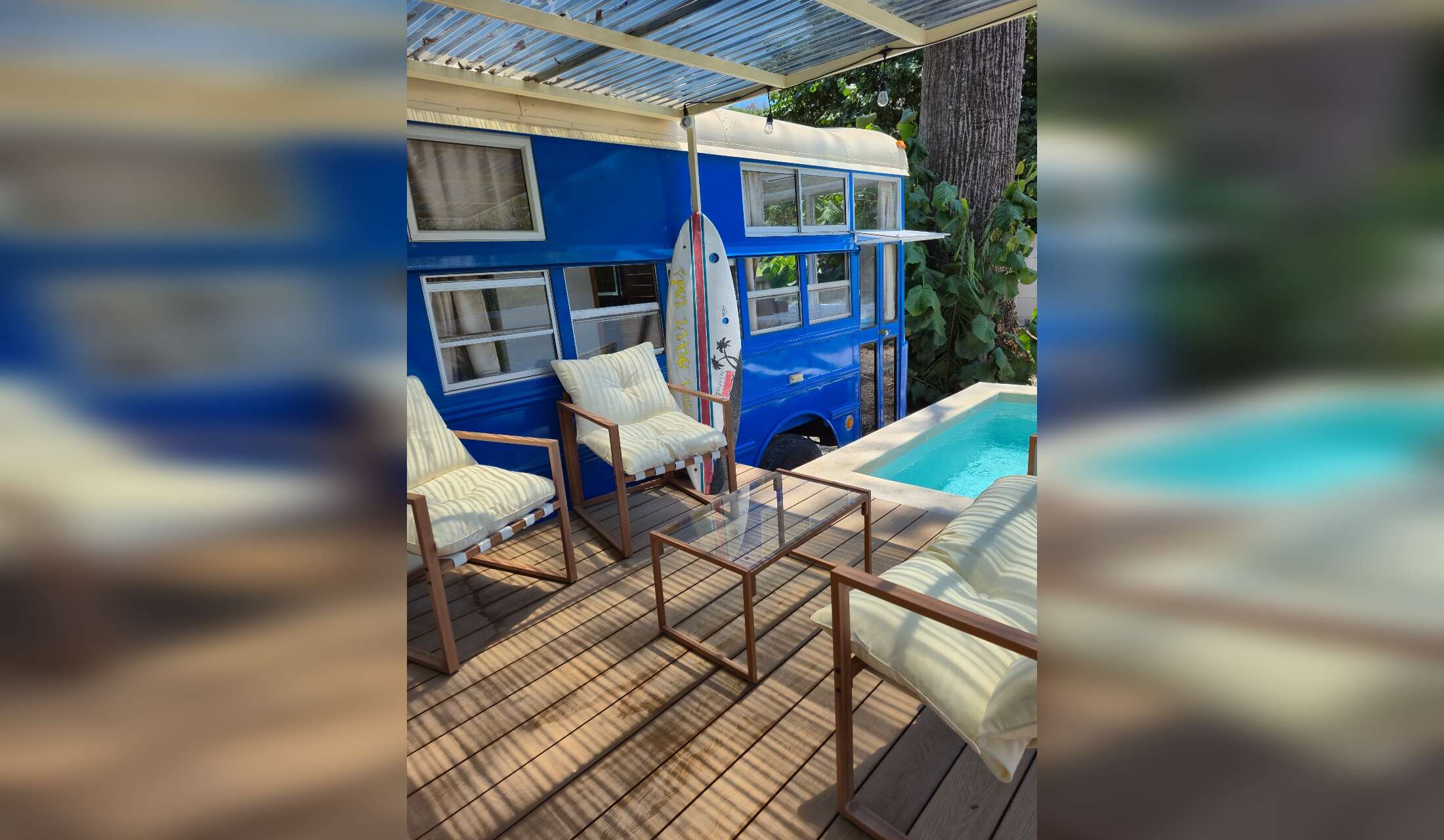 On the same property—completely separate thanks to a wall and automatic gate—we also run a small Airbnb made up of two converted buses.