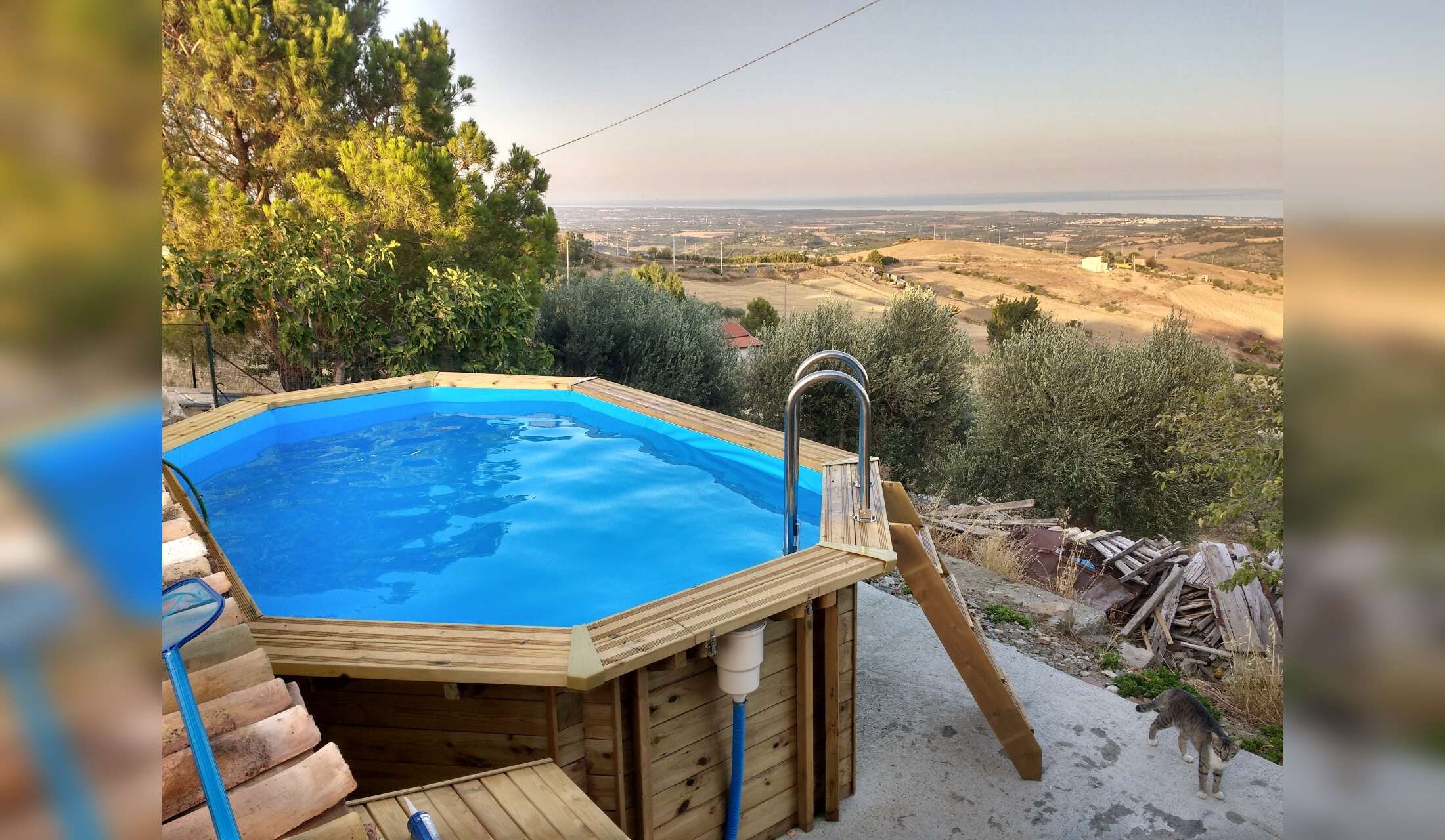The house is set on the top of a hill in 5 ha of land with stunning views to the sea and the mountains. We have a small swimming pool. Guest accommodation is in a separate building next to the main house (one bedroom, bathroom, kitchen/living room and sofa bed). We are 15 minutes drive from the beach. The old village of Nova Siri is 5 minutes walk away and has a restaurant, bar, pharmacy and 2 minimarkets. Other amenities are found in Nova Siri Scalo on the coast (10 minutes drive). You can walk the dogs straight from the house in the surrounding beautiful countryside. There is good wifi.