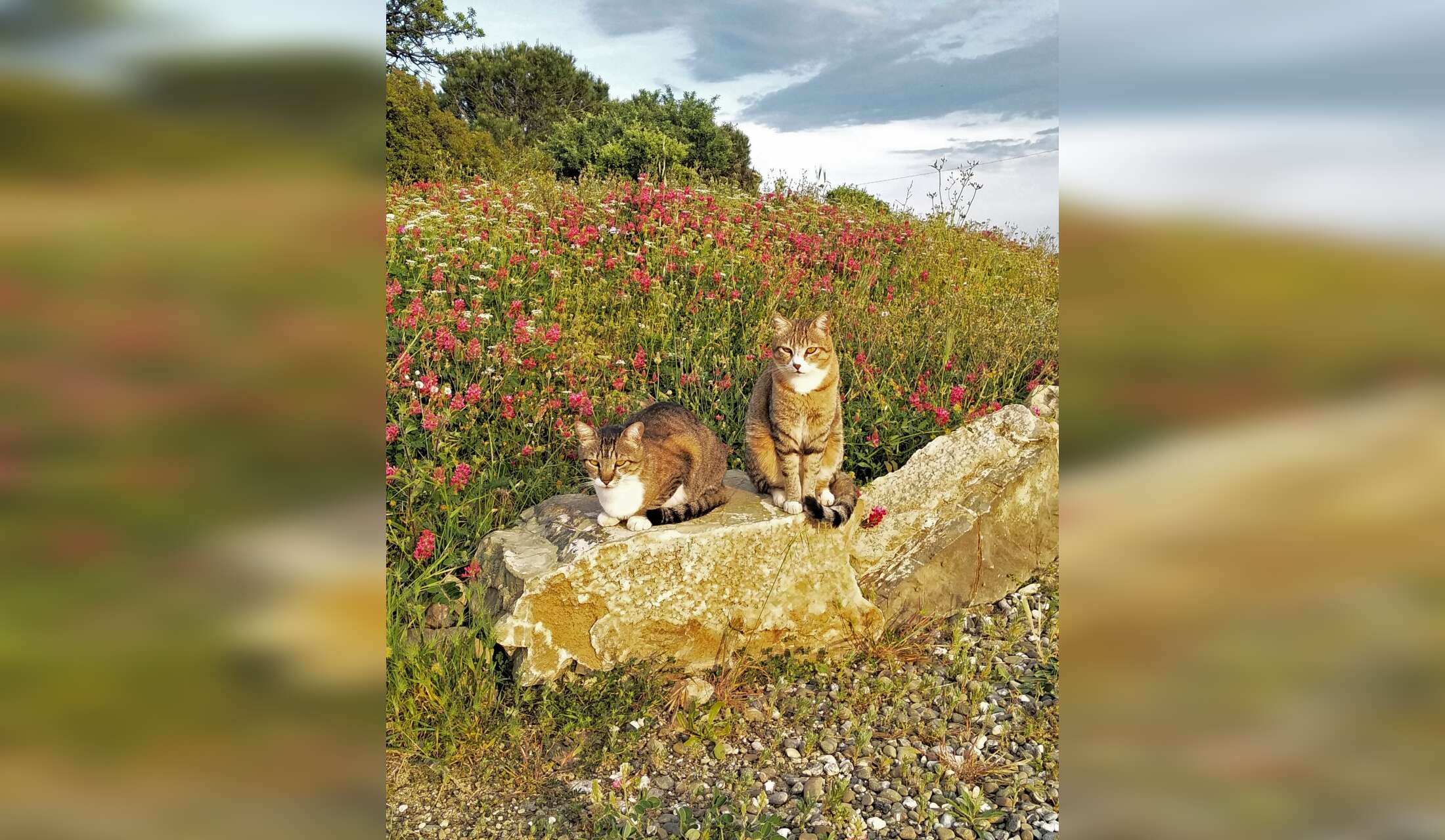 Feeding the cats twice a day (though they might ask for snacks!), giving them cuddles if they let you. The cats like to come with the dogs on their walks. They have a cat-flap and come and go as they wish.