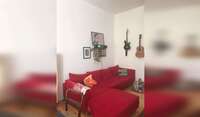 We have one bedroom with a double bed, one cubby with a pull-out single bed, one bathroom with a washing machine, toilet, sink and shower, a very well-equipped kitchen and a living-diving room with a small balcony.