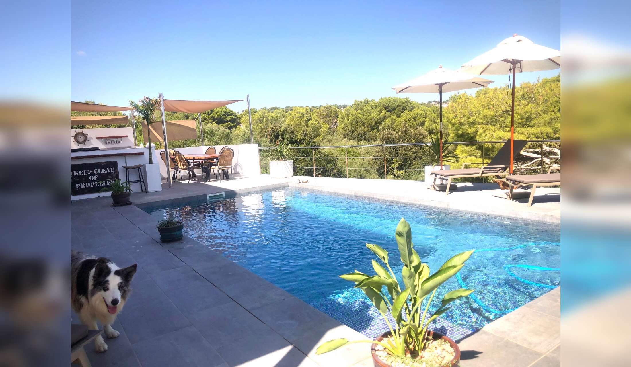 Janey and Keith are a delightful couple and their three rescued pets Bowie the dog, and Flaco and GT the cats are great characters who are a pleasure to look after. Bowie the Australian Shepherd dog made us welcome and entertained us from morning to night. He is possibly the best goalkeeper in the world, and very friendly and easy to look after. All the pets stayed calm and relaxed. Keith met us at the airport, and Janey had made us some tortilla as it was fairly late in the evening. They are both kind, considerate and generous. The next day they fed us and showed us round the house and local area, Keith had prepared a folder of detailed information about the house and dog walks. As well as taking us out to eat they introduced us to local friends so we had contacts. Janey showed us where everything was in the house and the feeding regime for the pets and we did a couple of local walks with her. We were quite sorry when they went on holiday. However we had a marvellous time as the pets were a pleasure to spend time with and look after. The villa and gardens are lovely and easy to keep clean and care for. Colin also cleaned and looked after the pool. Janey kept in touch daily and we sent updates and photos of what the pets were up to and any little concerns and she was most appreciative and encouraging. We took great care with the pets especially Bowie as he has had a complex operation to one hind leg and while he is very active, it needs to be watched over to ensure it's not overstrained. We looked after everything including the car and tried to leave it exactly as we found it. When Keith and Janey returned, we had an evening together and went out for dinner and feel we have made great friends with them and their lovely little animal family. Thank you both so much, and we would love to come again!