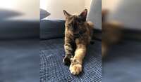 Érable is an older cat so she sleeps most of the day and is not very energetic. She is wary of strangers at first but she is sweet and loving after some time together. She receives special food but does not have serious health problems.