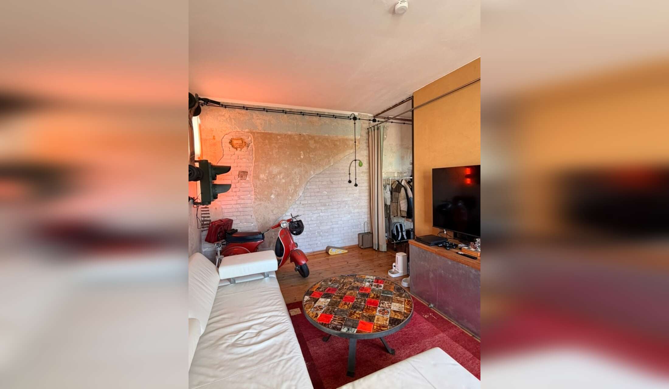 Roughly 100sqm of living space, not including the recently added balcony. The balcony faces directly where the sun shines from morning to sunset.