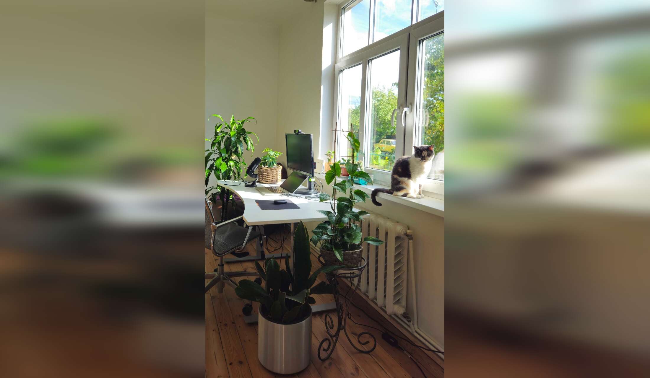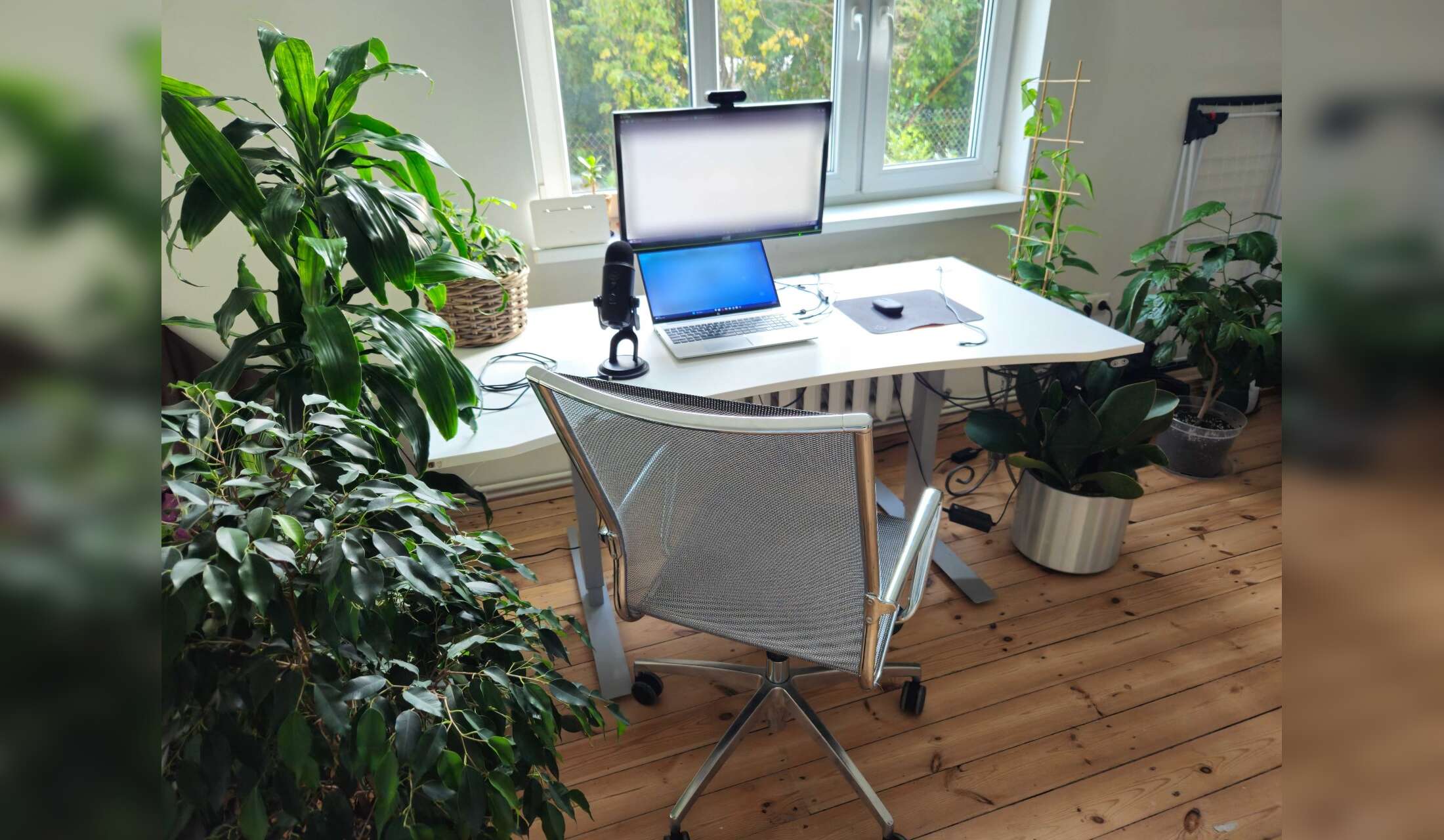 I have a good setup for remote workers - great Wi-Fi, an electric sit/stand desk, a monitor, mic, webcam you can use.