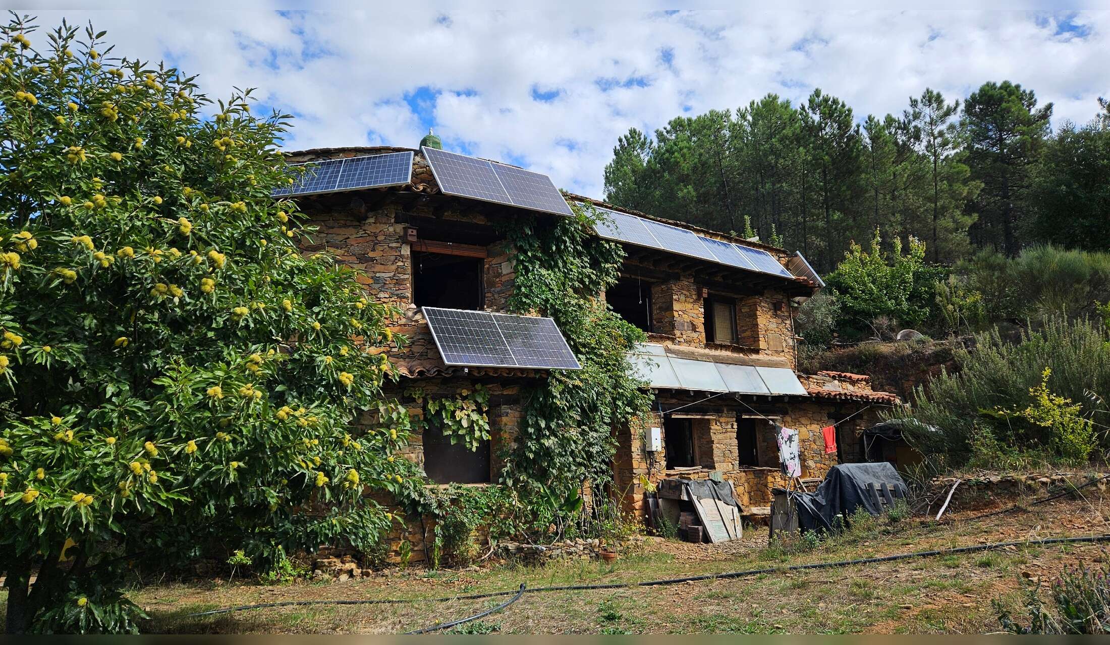 Aquí puedes disfrutar de la tranquilidad, el contacto directo con la naturaleza, en el corazón de la sierra de Gata. Libre de químicos y contaminantes a tu alrededor. Poder dormir en una casa bioclimática, hecha con piedra, barro y madera.