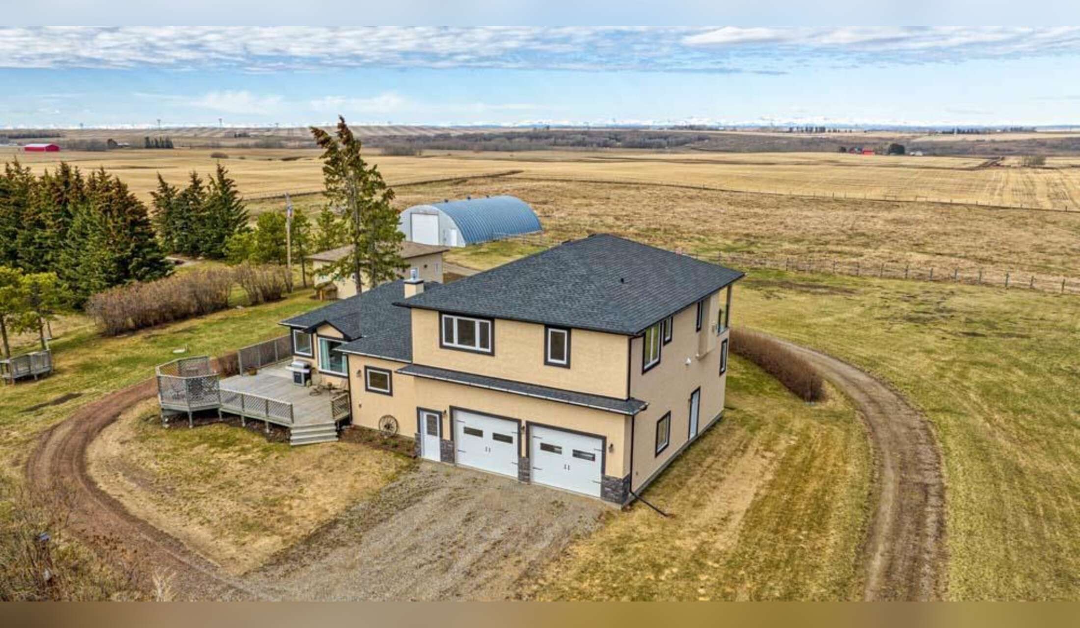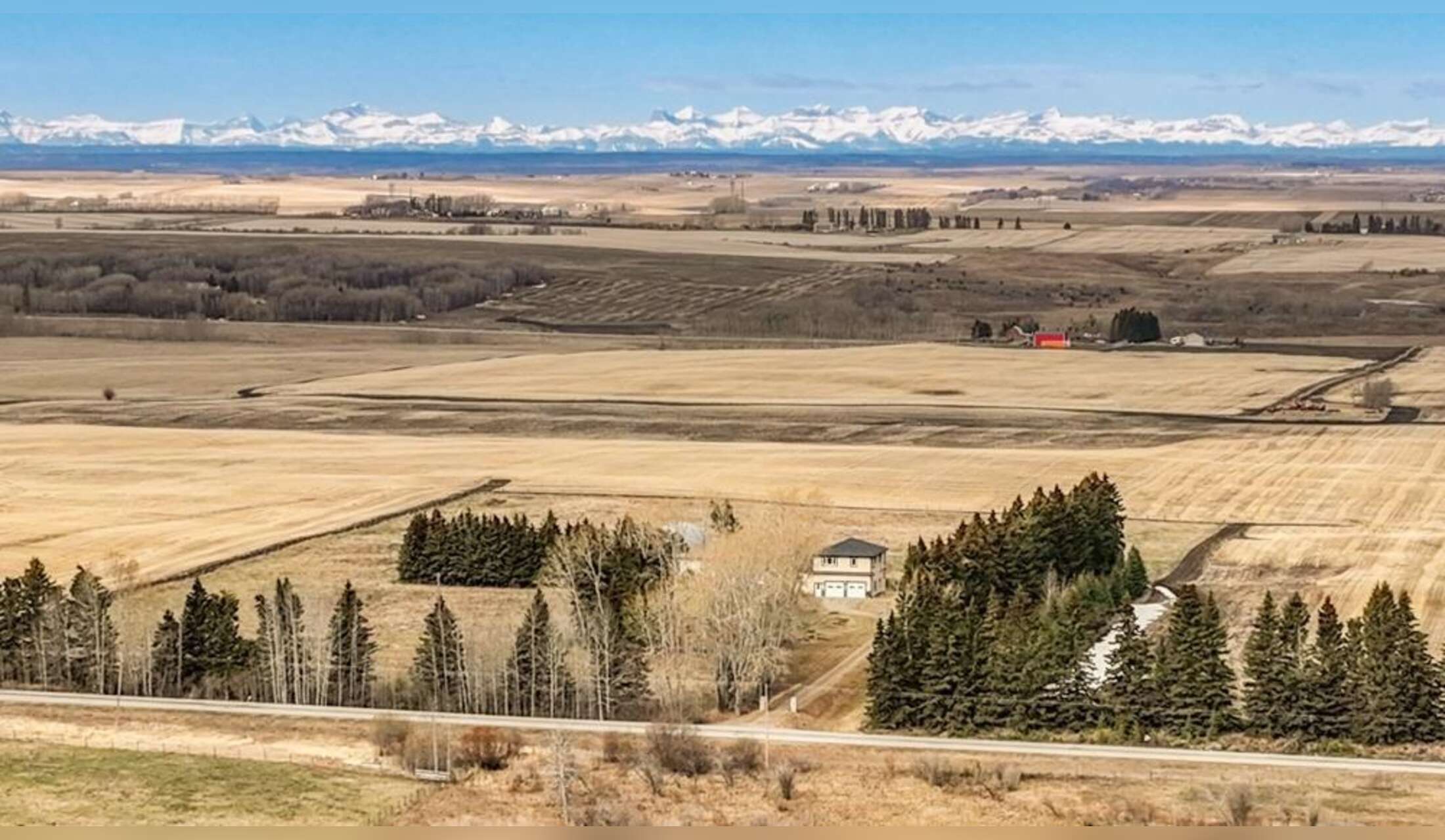The property is in a rural setting (on a tar & chip road), but close enough to shopping, a large city, with a full panoramic view of the Rocky mountains.