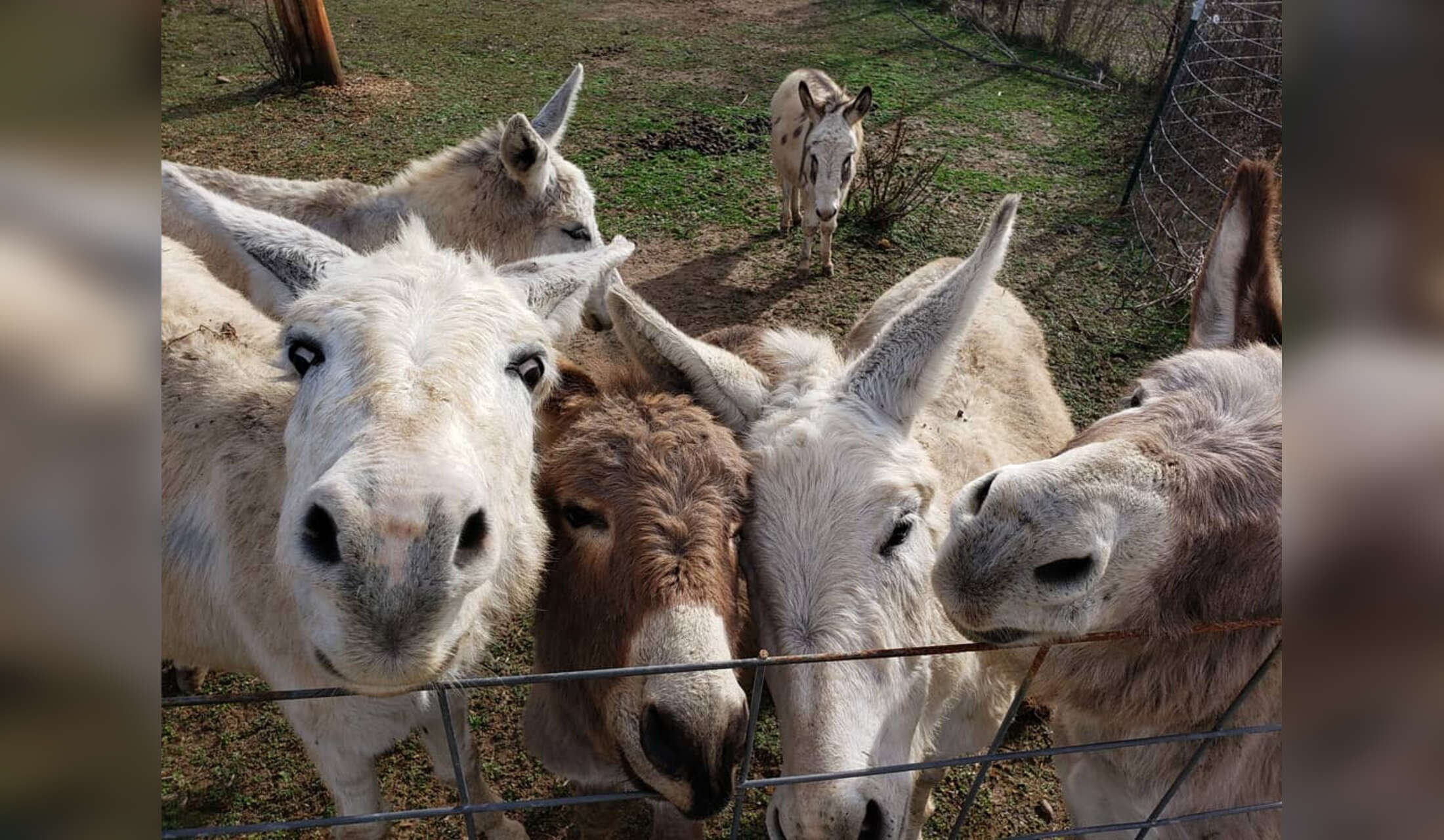 There are 15 donkeys. 10 females are bonded and have one zone. The males are split up and have zones they do not leave. Peacocks and peahens have a unique sound. Chickens and roosters have a large area that is protected and they are also allowed to free r