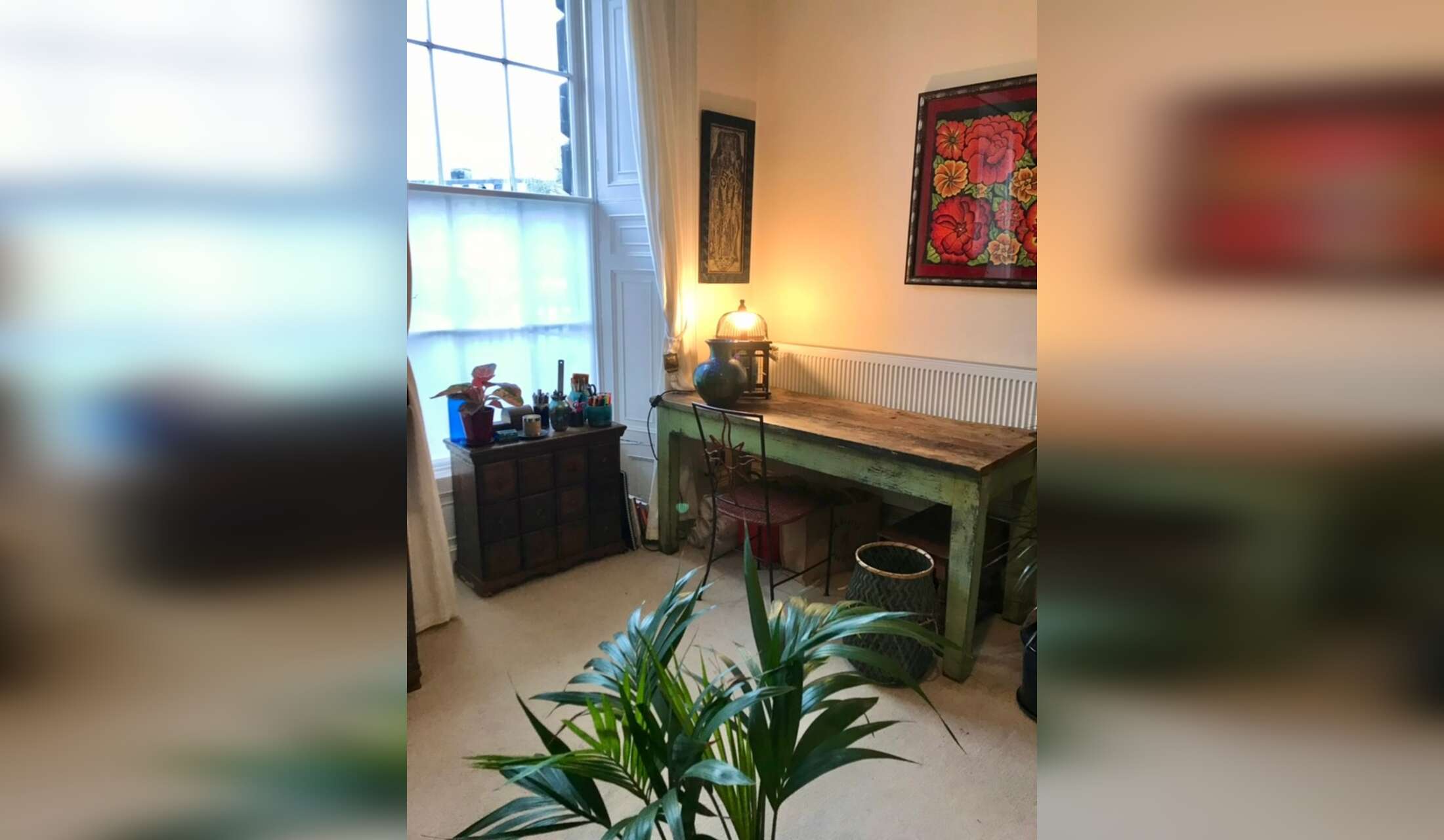 It's very central to Bath and flat walk of 10-15 mins to the centre. River path leads to train station 15-20 minutes away but I usually pick up sitters from station. It's on major bus routes. It's opposite Victoria Park, right near Royal Crescent, it's on a crescent overlooking a green, next to the river, and has a large back garden (communal). It has original features. Beautiful, light-filled flat. 5 minutes walk to Sainsbury's - huge shop - by river route.