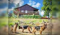 Friendly dogs, one especially who loves to play ball.