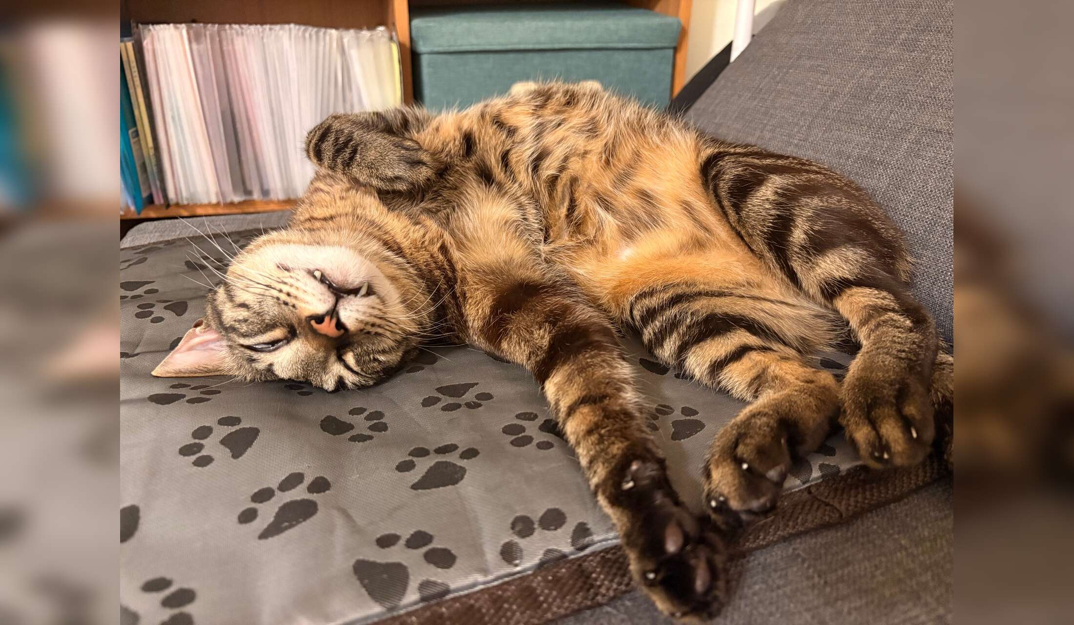 Cat care: feeding twice a day, emptying the litter box and playing daily. House sitters will need to clean up after themselves and take out trash.