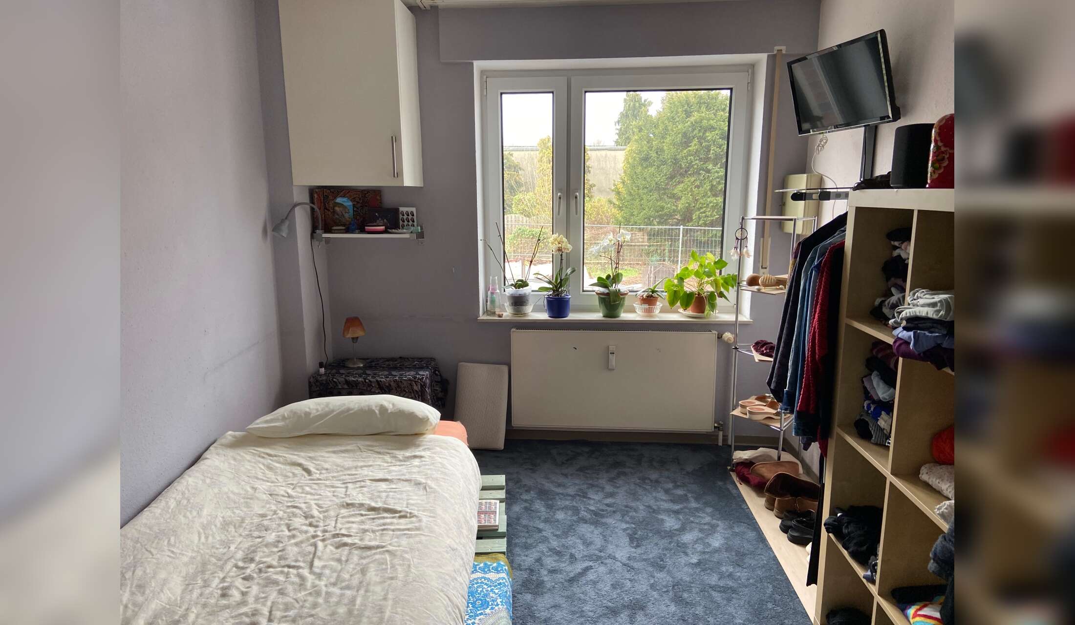 While Osnabrueck is well connected to bigger German cities like Berlin, Hamburg or Cologne (you can get their by train in about 2-3 hours), there's no big airport close by. If you're coming from further away, you'd have to fly to Amsterdam or one of the cities mentioned above, and then come here by train. There's no garden, and the flat is in an urban area, but there's a park nearby and you're well connected - the countryside is easy to reach by bicycle or bus. No smoking in the flat. Ziggy likes to snuggle up to people when sleeping, so you'd have to be fine with sharing the bed with her.