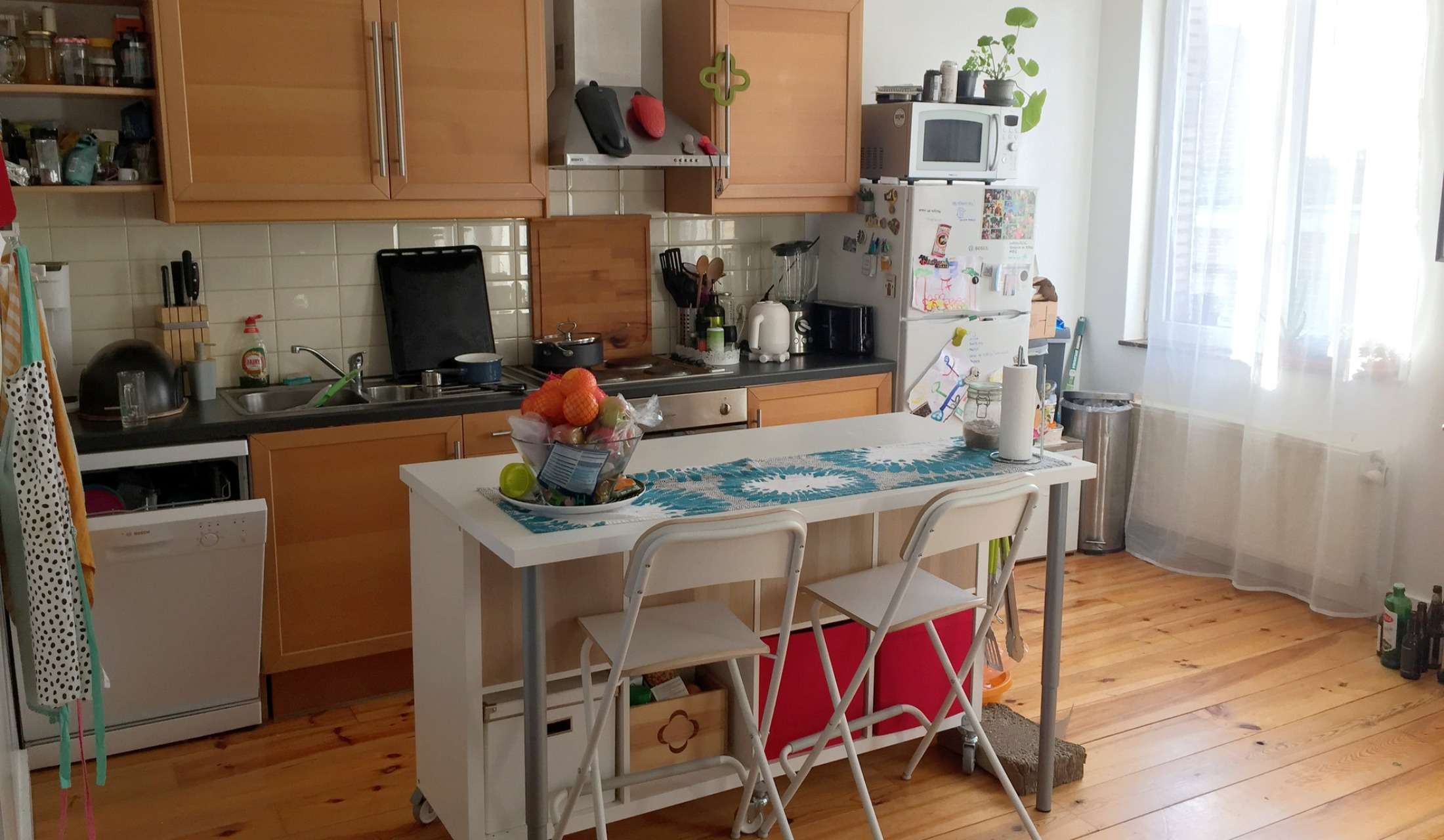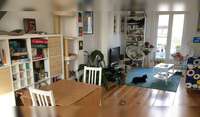 The apartment is a spacious duplex, well equipped, with a TV and WiFi Internet. The main bedroom downstairs has a double bed and there's a large convertible sofa in the guest/work room. Sitters are free to use whichever room they prefer. The bathroom and a toilet are on the bottom floor, as well as the washing machine. There is also a small north-oriented yard which can be accessed from the bedroom.