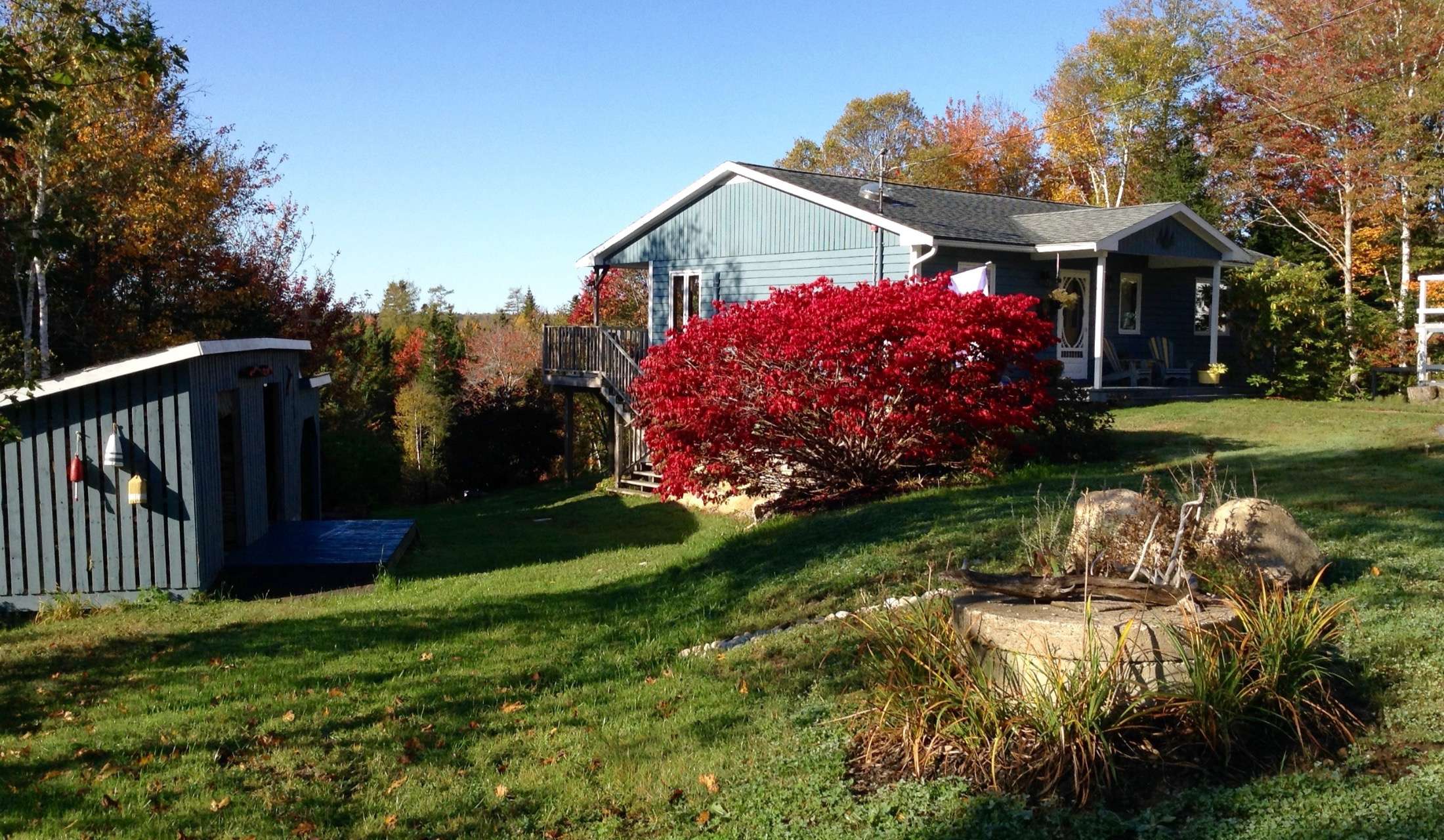 We live in a very quiet safe area. Our house is set back from the road and there are woods behind the house for privacy. Our quiet road leads to the ocean and on a clear day you can see out to the Peggy's Cove area. Lobster fishermen can be seen tending to their lobster pots most of the year and fresh lobster can be bought close by. The city of Halifax is a 40 min. drive away and offers all the things a big city would have.