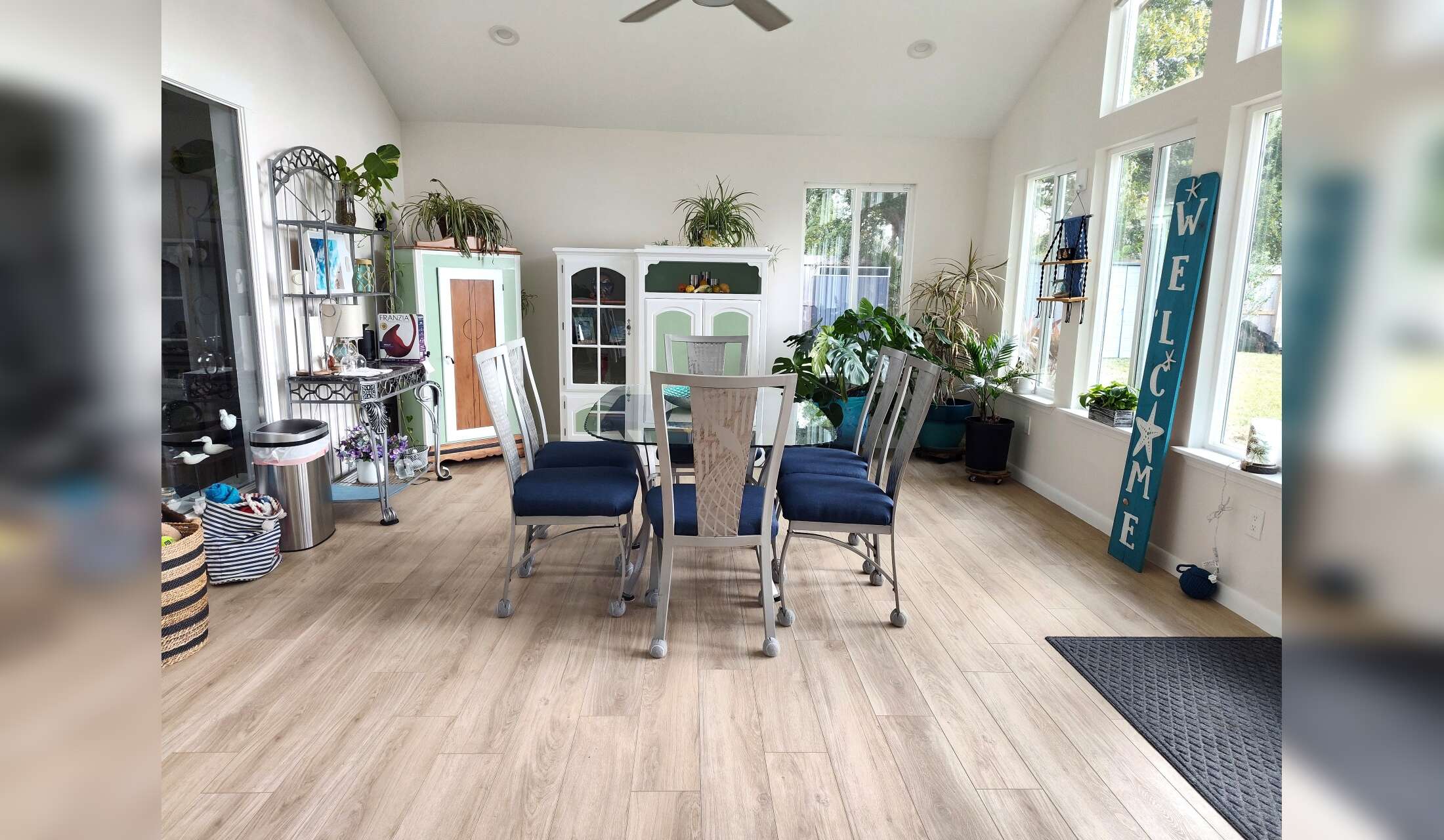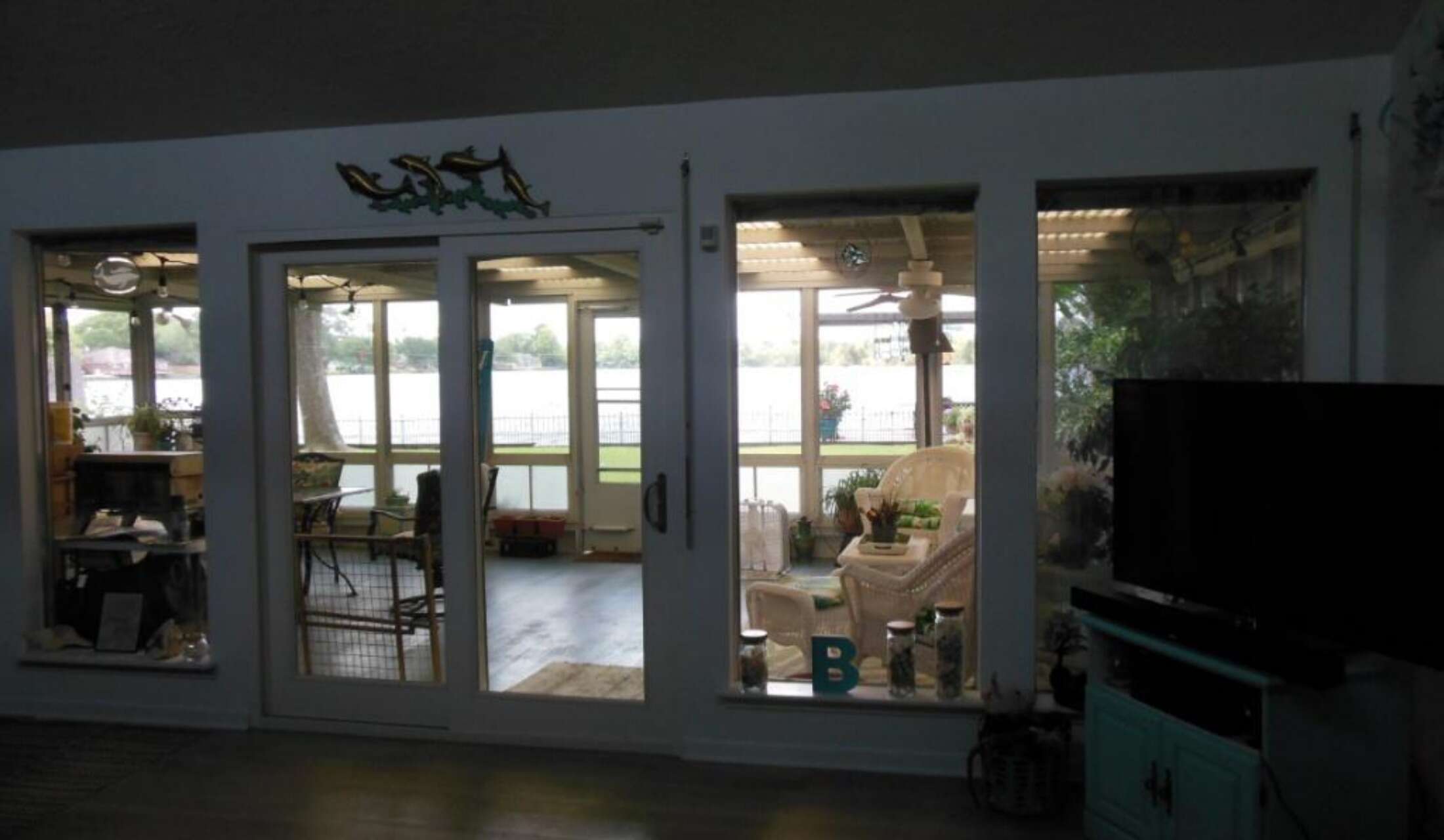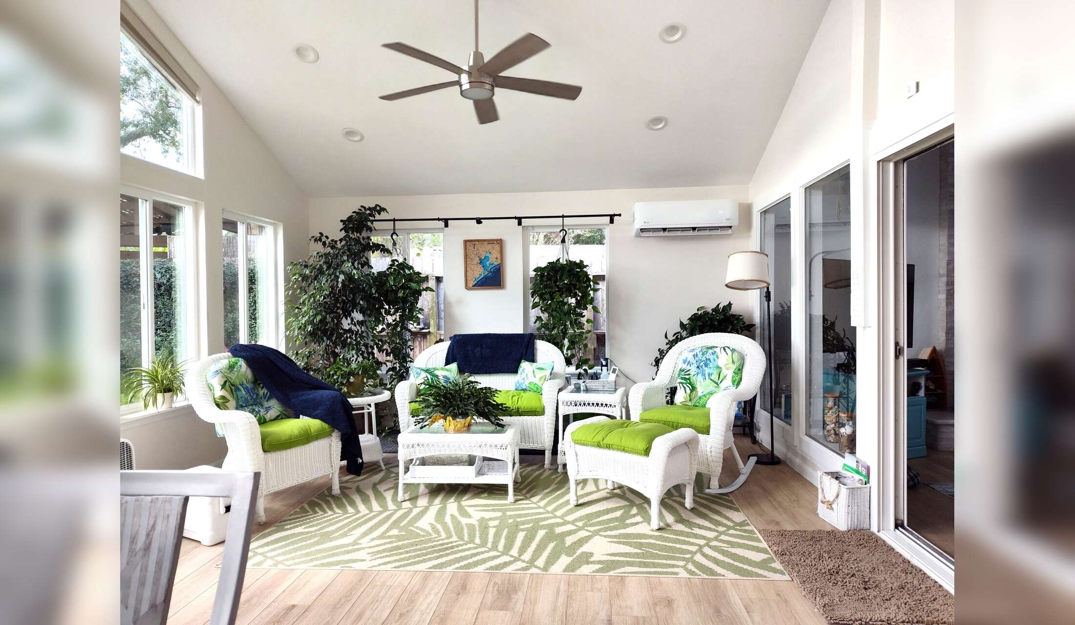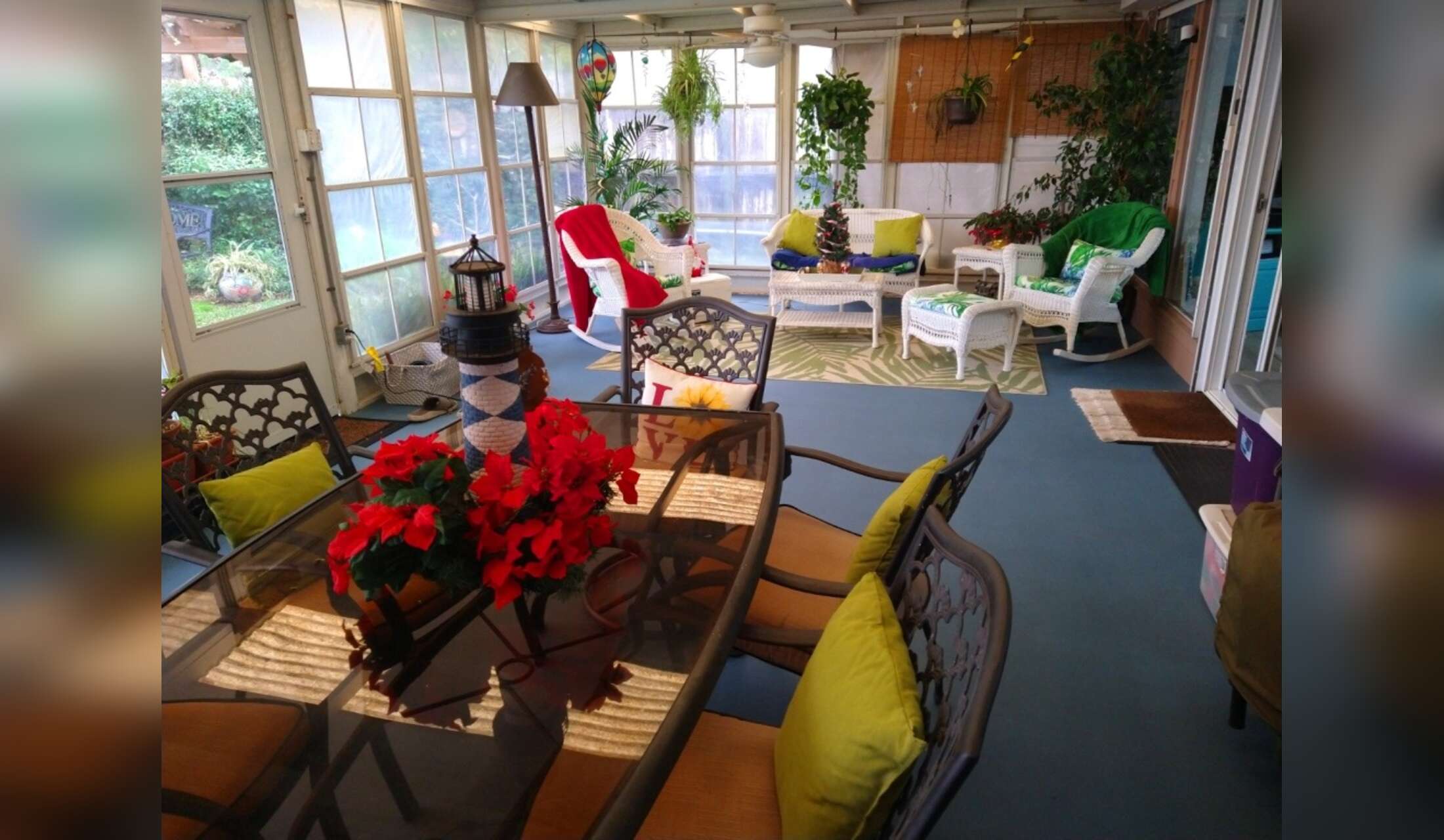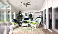 The sunroom is a great place to relax with a book.