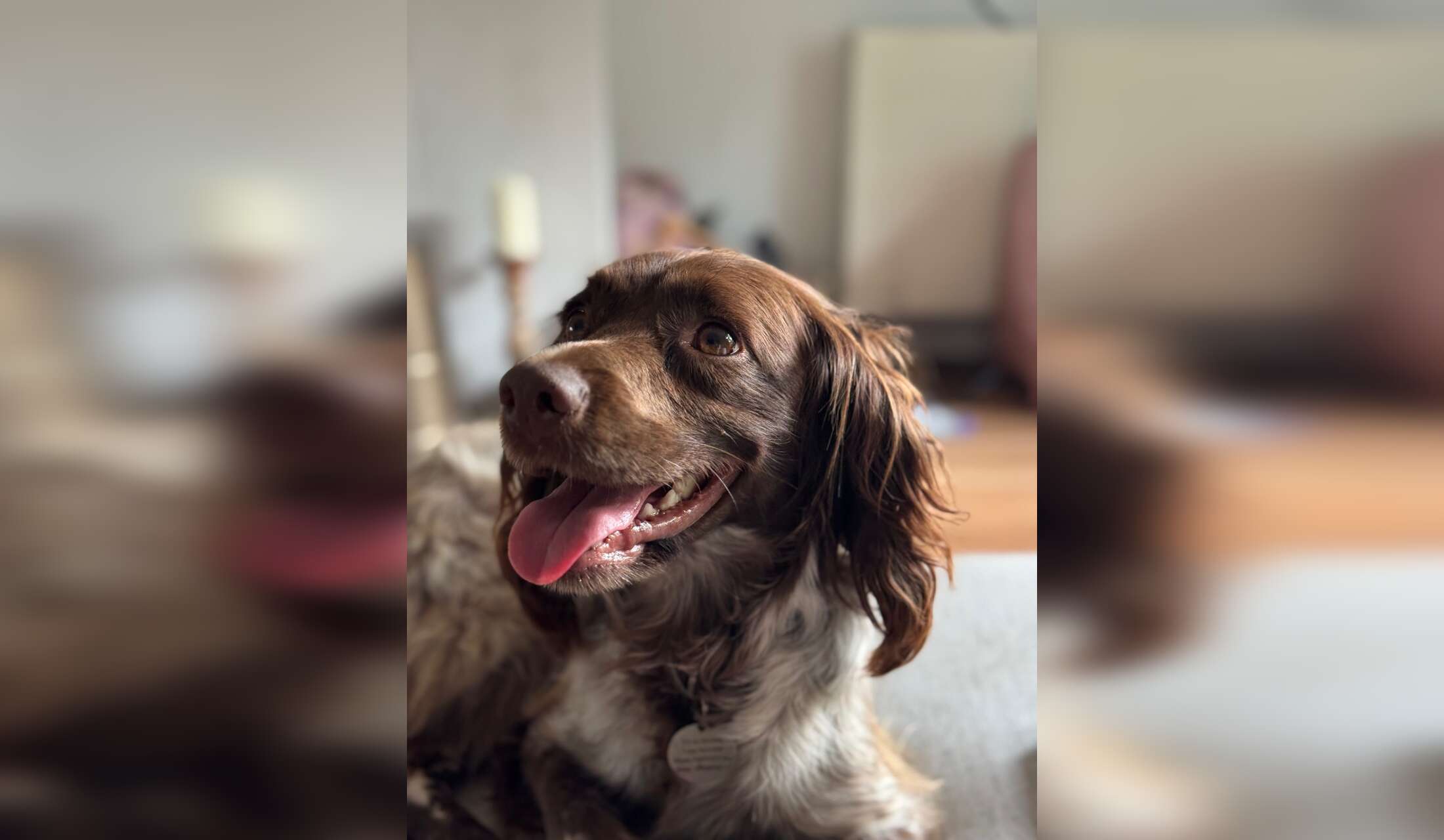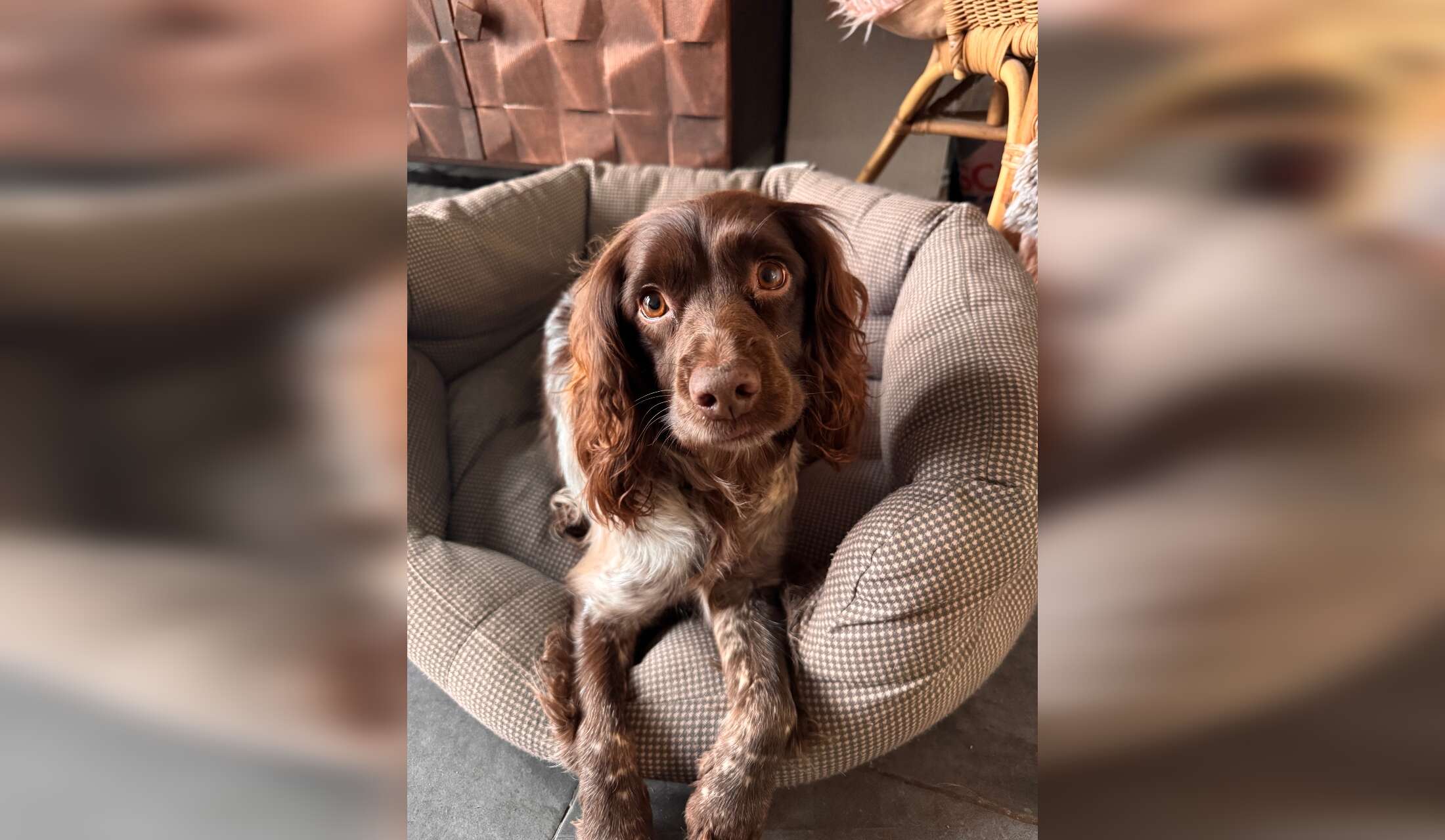 Pepper is our 2 year old black w Sprocker - full of character and energy and again is settled when in the house.